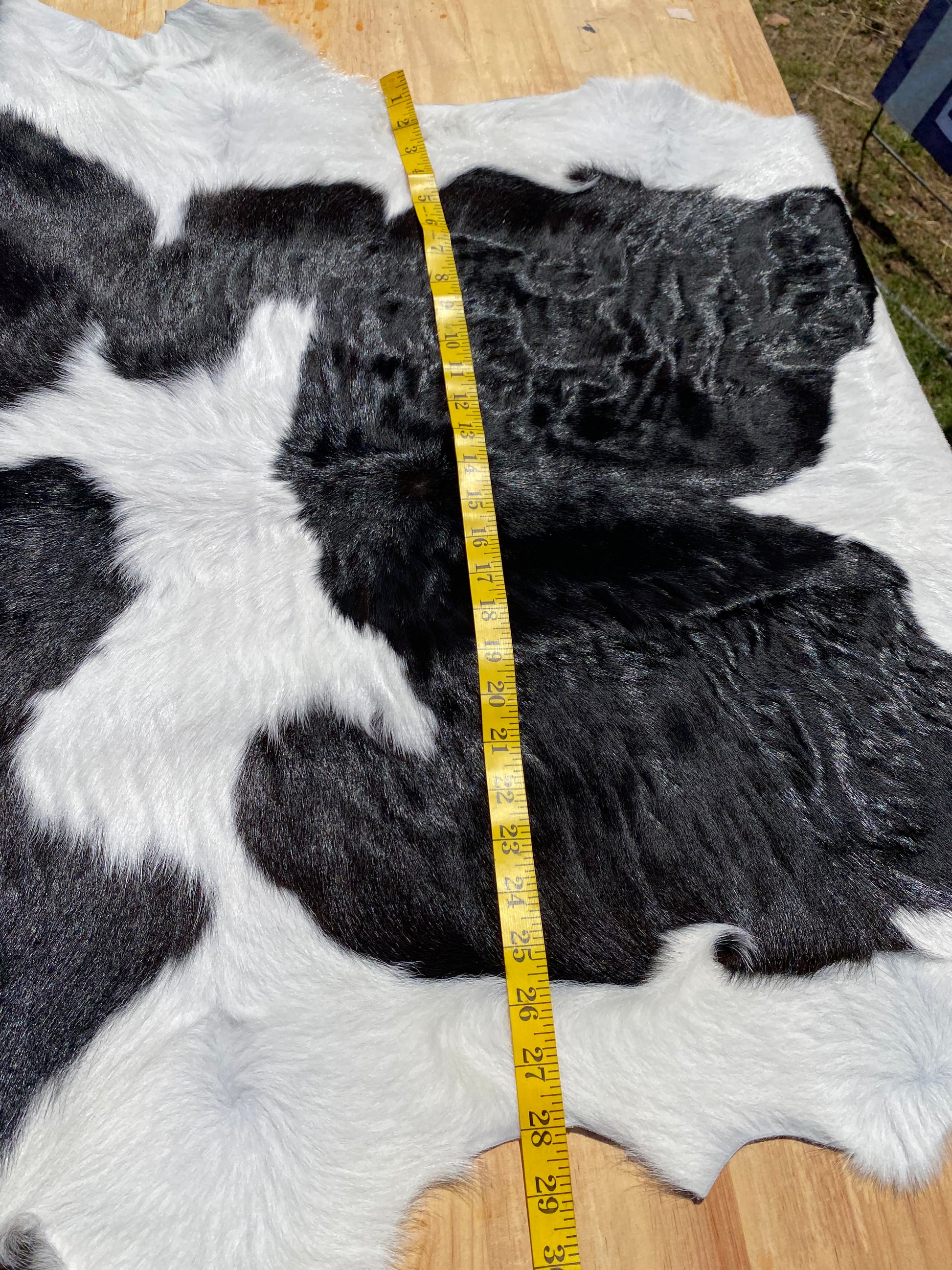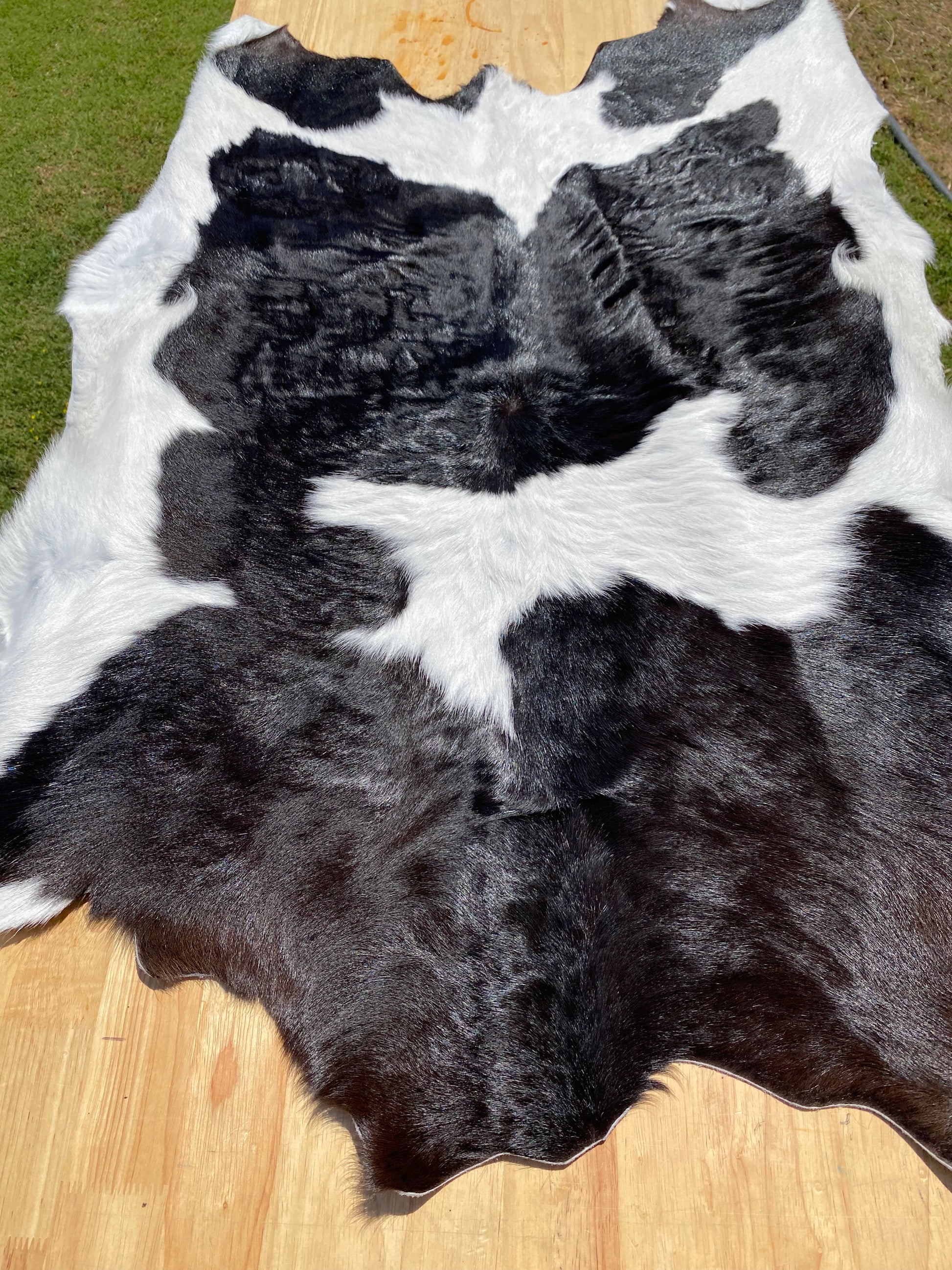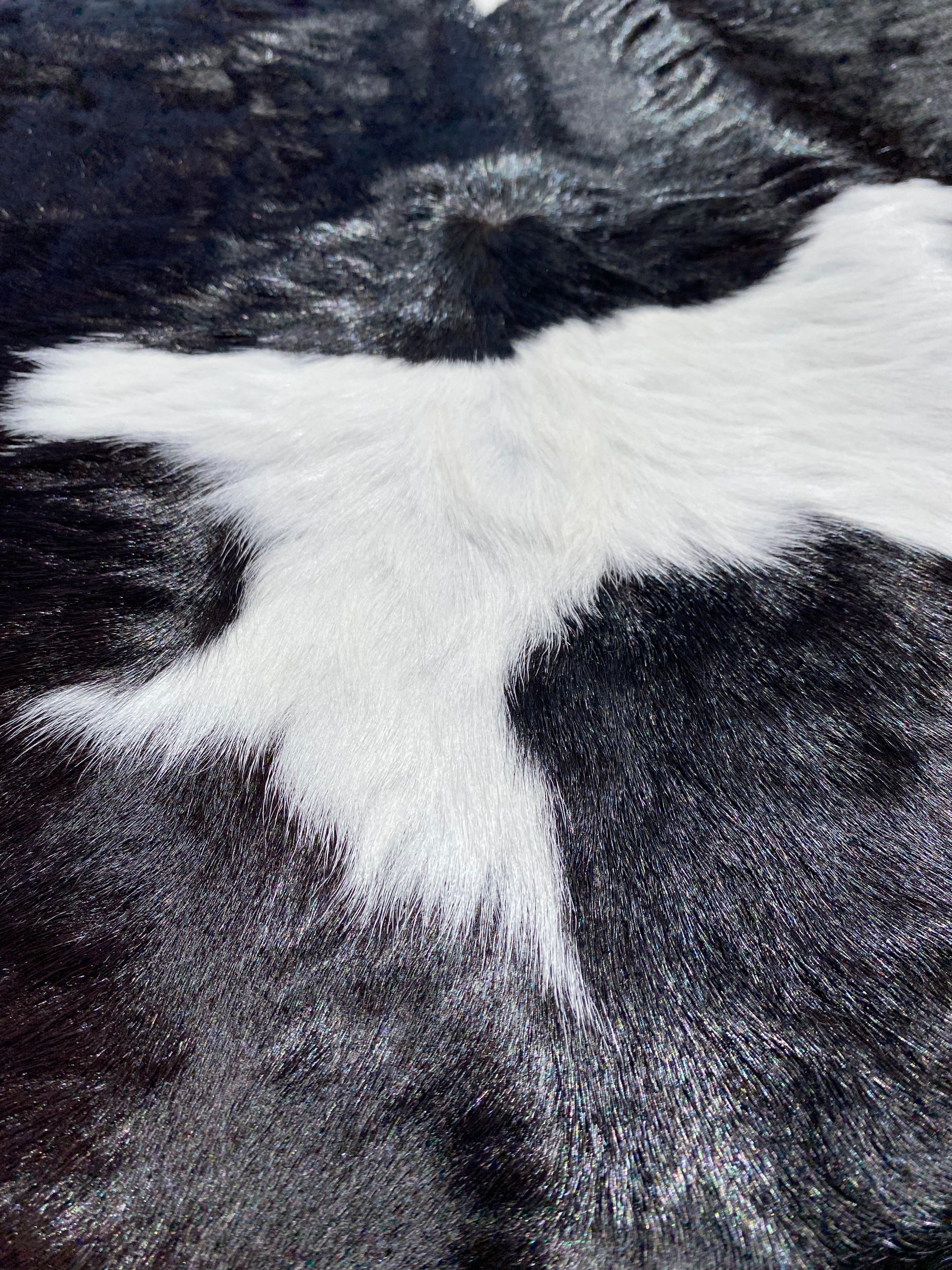 This exquisite piece combines the natural beauty of cowhide with the unique texture and softness of calf hair, making it a standout addition to any room or space.
