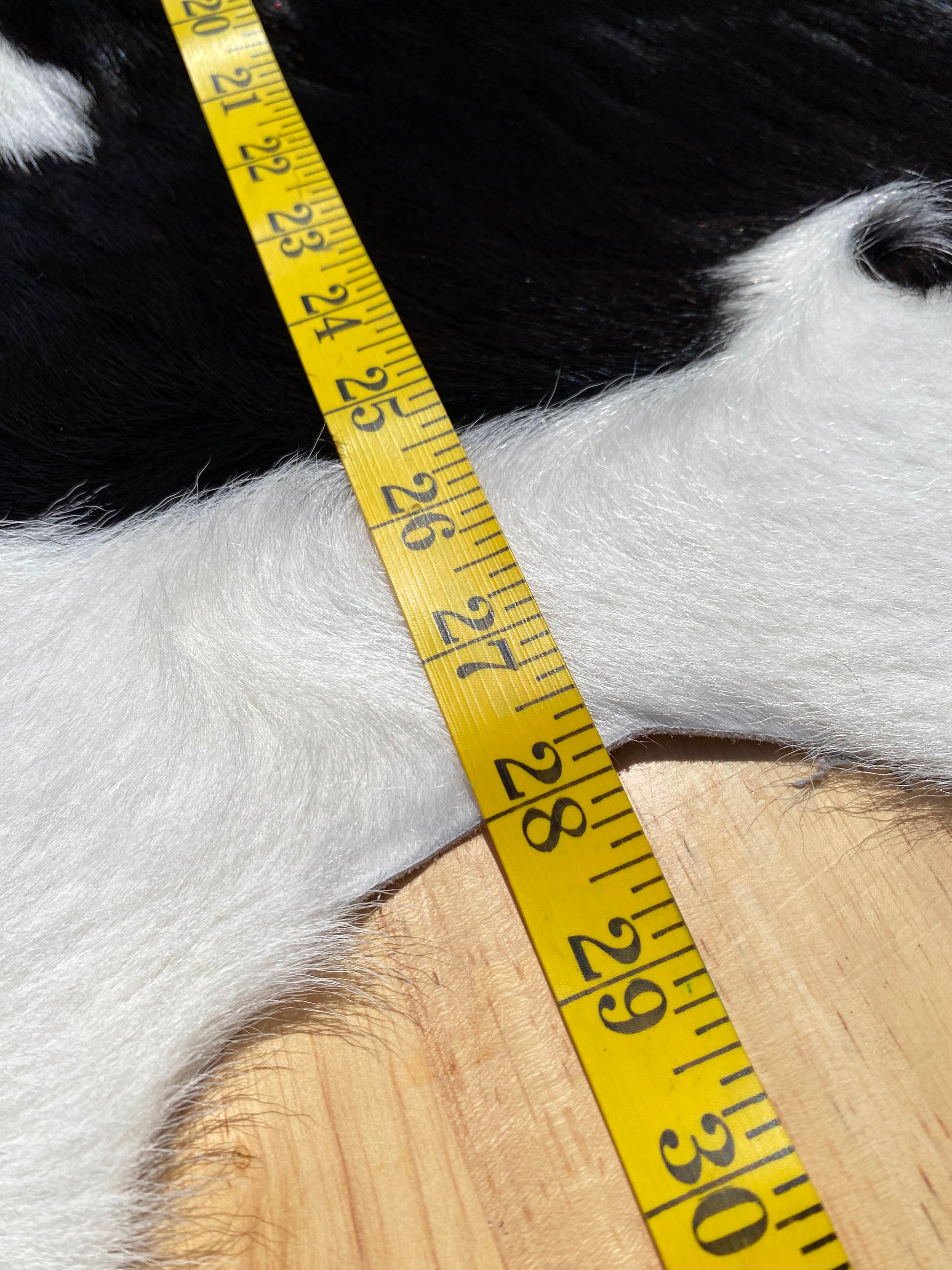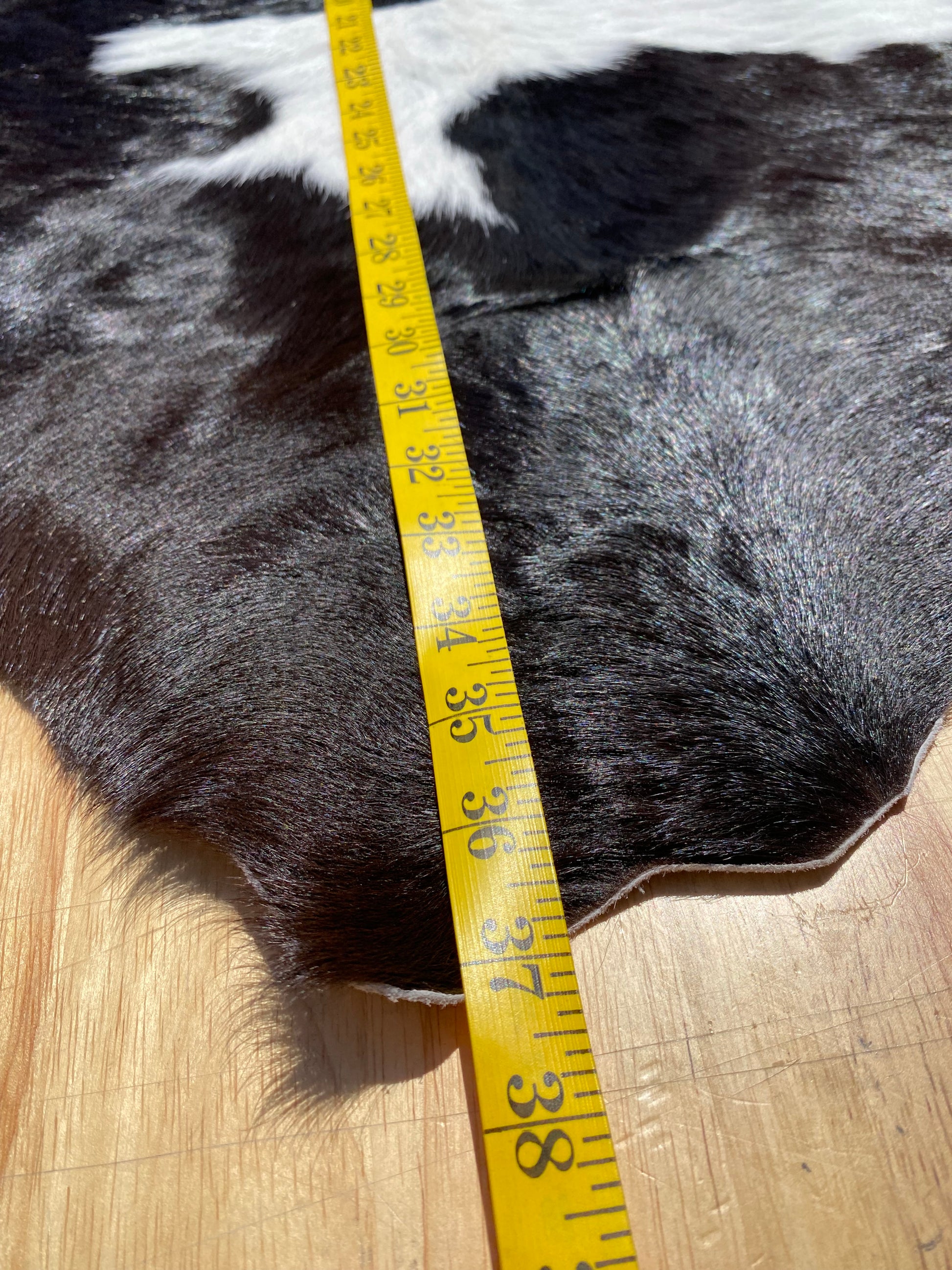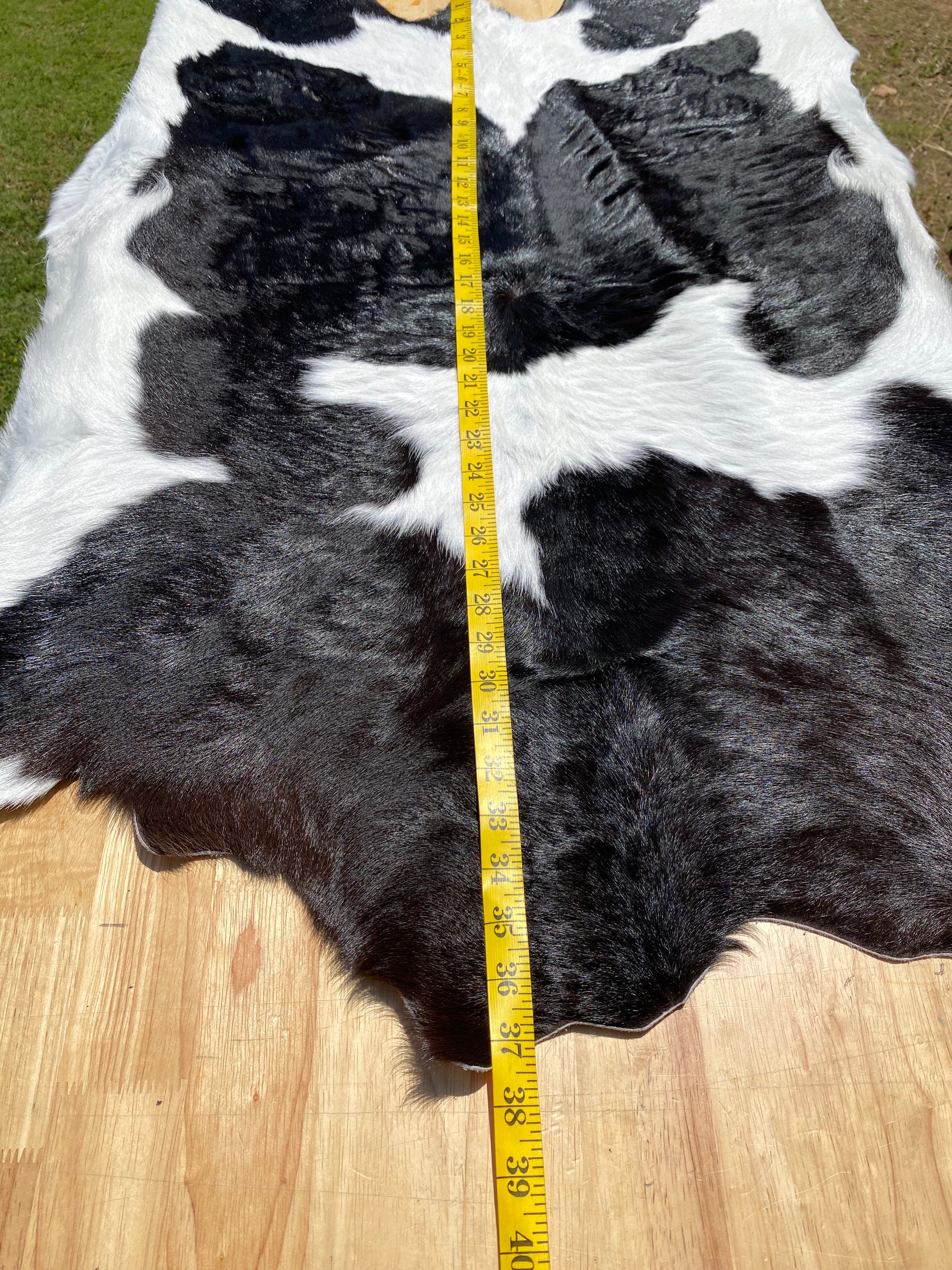 This exquisite piece combines the natural beauty of cowhide with the unique texture and softness of calf hair, making it a standout addition to any room or space.