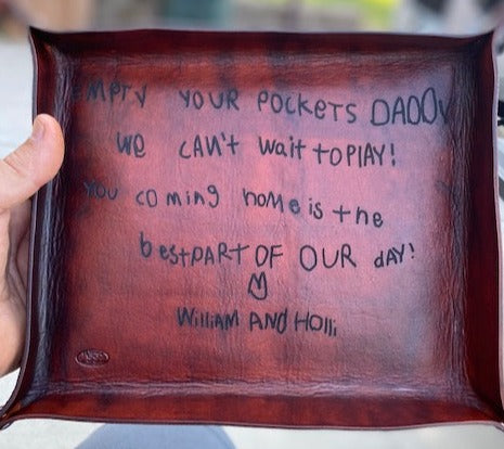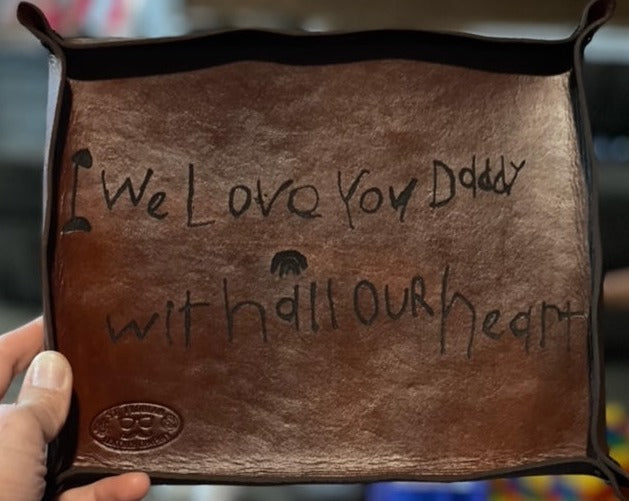 Custom Catch-All from St. Florian Leather Co. This is not just a leather tray; it's a canvas for your imagination, making it the ideal gift for that person who seems impossible to shop for. Express your sentiments with a handwritten message, a note from the kids, or a cherished message from the past.