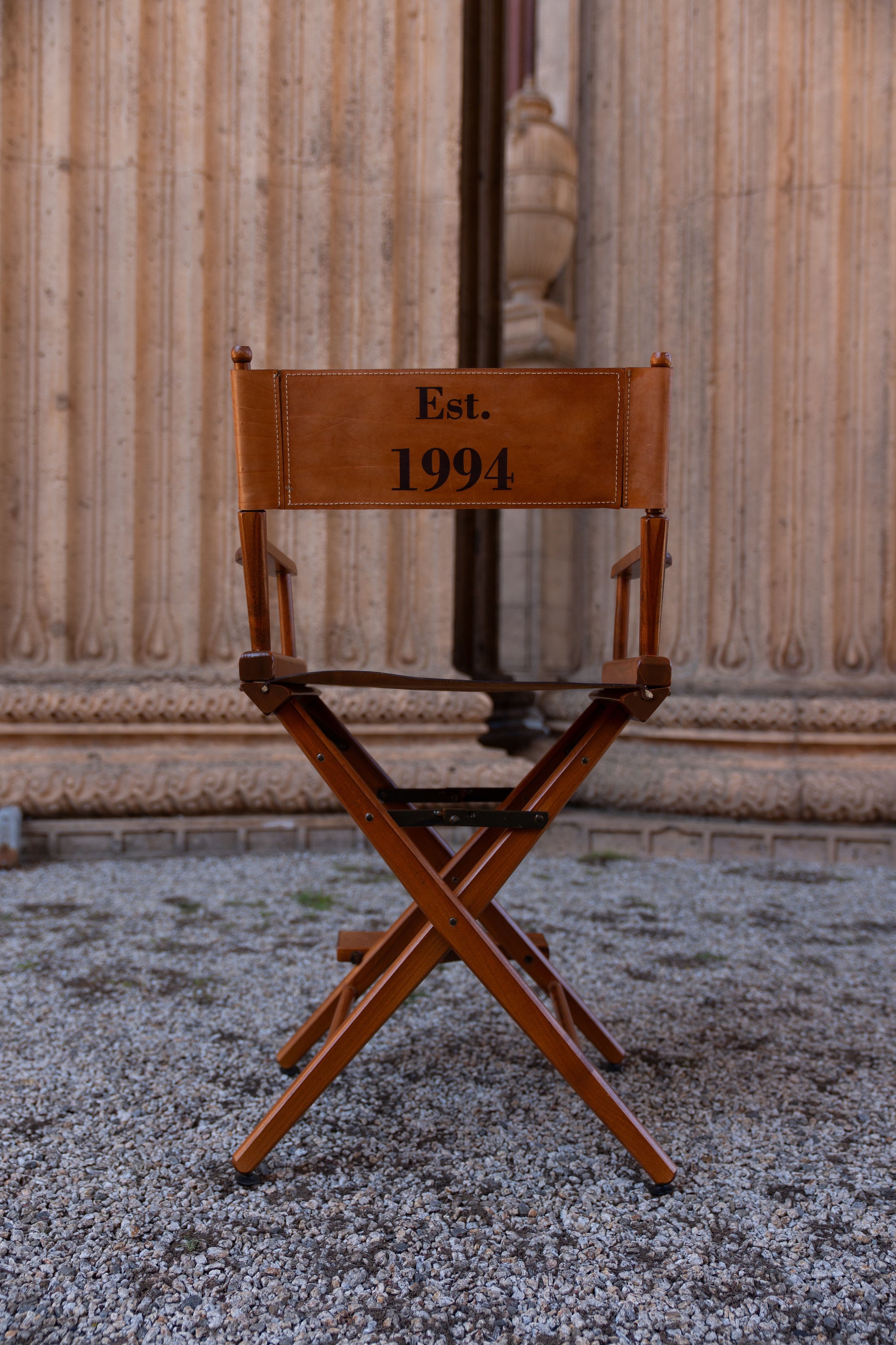We’ve taken the iconic Telescope™ Director’s Chair—renowned for its sturdy hardwood frame, folding design, and timeless silhouette—and elevated it with premium Portofino Spanish Leather imported directly from Spain. The standard canvas seat and back are replaced with full-grain leather, with a beautiful Natural stitching, that’s laser-engraved in-house with your custom name, logo, department insignia, or artwork.