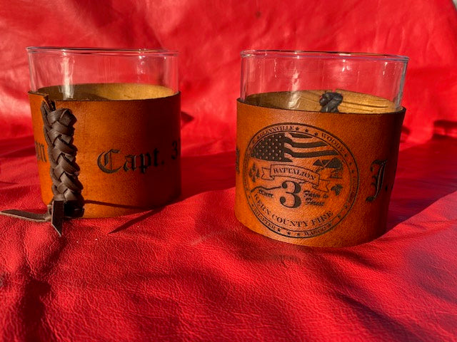 Crafted with precision and attention to detail, our whiskey glass covers feature quality 4-5 ounce veg-tan leather, providing a distinctive and refined wrap. The leather is carefully stained and finished, enhancing its aesthetic appeal and ensuring a touch of sophistication to your home bar. These glasses serve as a memorable addition to your collection or a perfect gift for the discerning whiskey enthusiast in your life.