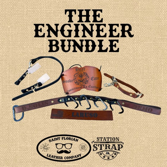 The Engineer is a premium bundle designed to provide firefighters with essential, high-quality equipment. This set includes one of our Leather Glove Holders, one Leather Station Strap, one personalized Locker Name Plate, one Black Leather Chin Strap, and one Custom-made MSA G1 Mask Cover. Perfect for both seasoned firefighters and new academy recruits, this starter set makes sure you are well-equipped and organized on every shift.